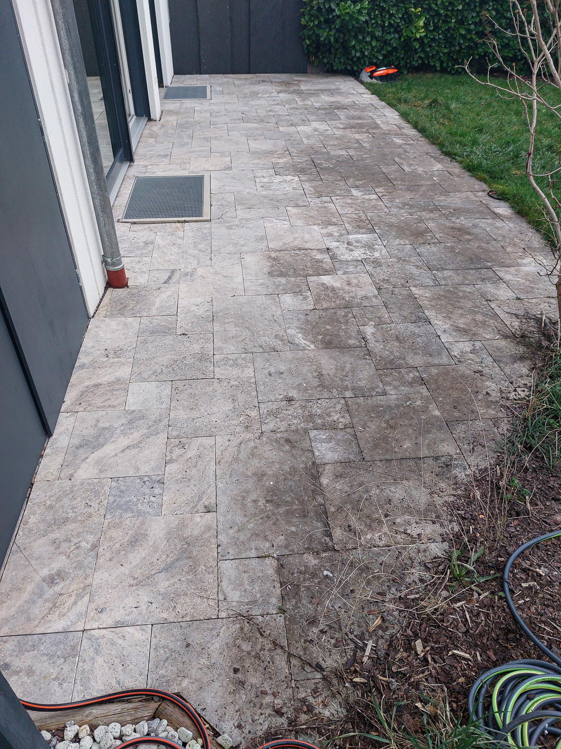 Travertin ist ein natürlicher Kalkstein, der durch mineralreiche Quellen entsteht. Seine charakteristischen Löcher und warmen Farbtöne verleihen ihm eine rustikale, mediterrane Anmutung. Ob als Bodenbelag, Wandverkleidung oder im Außenbereich – Travertin ist vielseitig einsetzbar. Allerdings ist er empfindlich gegenüber Säuren und Abnutzung. Unsere Reinigung und Versiegelung bewahrt die natürliche Schönheit Ihres Travertins und schützt ihn vor Flecken und Verwitterung.