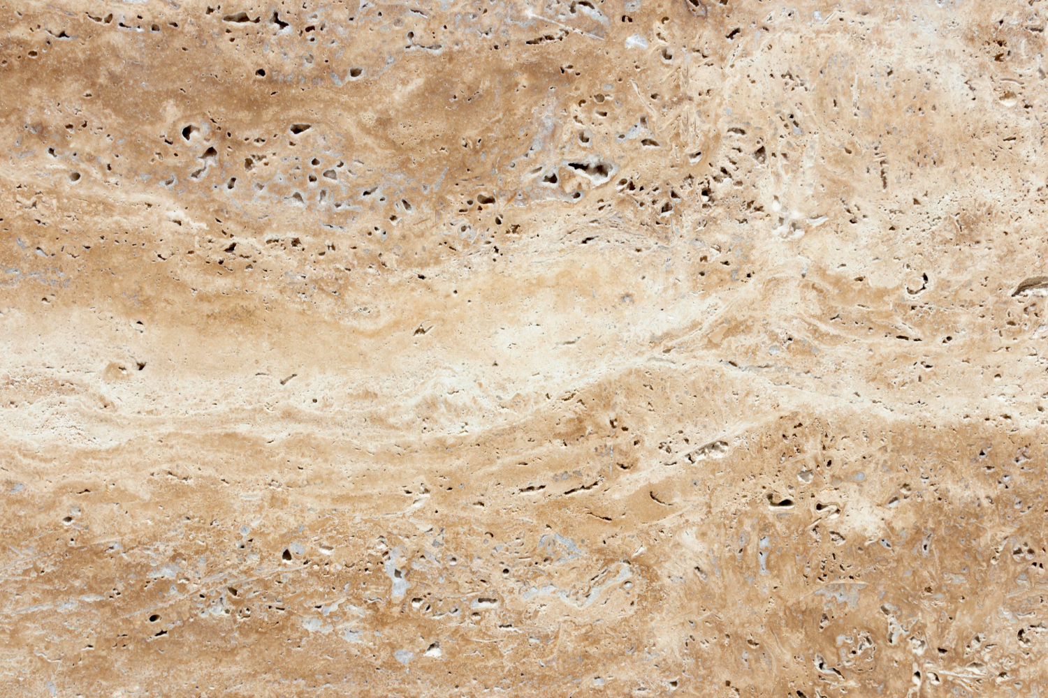 Travertin – Porös mit natürlicher Maserung, oft in warmen Farbtönen
